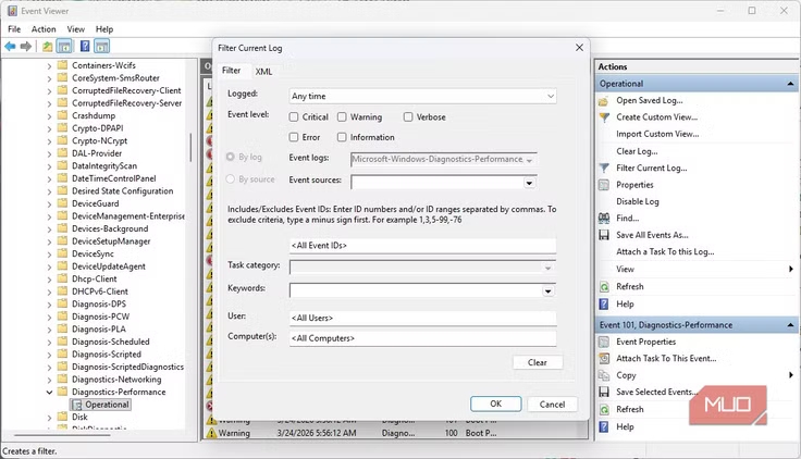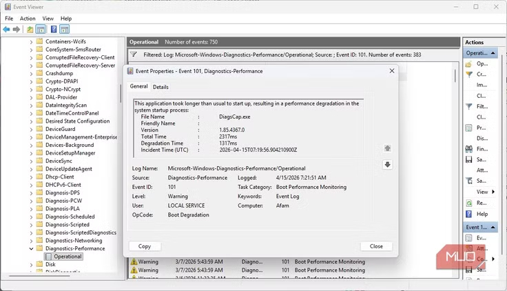 System Tips Android | Windows | ABCDEFGHIJKLMNOPQRSTUVWXYZONPRTOFF title keywords keyboard_steps Look Inside DataConditions:Order: 26 System Title Keywords Keyboard Steps Posted Date Windows Ads - Remove Them ads lock screen search AI Lock screen Start -> Settings -> Personalization -> Lock Screen -> personalize lock screen -> Default "Windows spotlight" to "pictures or slideshow" -> Clear "Get fun fact tips and more on your lock screen" pined Apps or Ads Even though may not be installed now clicking on them will install them so remove Start -> right click -> Select "Uninstall". I removed a bunch. The sequence has to be done for each app to be removed. Ads in Notifications Start -> Settings -> System -> Notifications {OFF} -> Scroll down to "Additional settings" -> Uncheck all 3 checkboxes Block AI looker Search gpedit -> Administrative templates -> Windows Components -> Windows AI -> mark everything enabled to diabled 01/06/2026 Android Dangerous Settings ads spy secret May Require "Developer options" to be installedSETTINGS -> Developer options {bottom} -> System Tracing -> Trace Debugable Applications {Turn off} scroll to "Per-CPU buffer size" {CHECK 8192 KB} Clear saved traces Secret Wi-Fi menu Developer options -> Wi-Fi non-persistent MAC->ON Getting rid of ads Settings-> Connections –> More connection settings -> private DNS -> private DNS provider {check} -> type in "dns.adguard.com" -> save parasitic setting Settings app -> digital wellbeing & parental controls -> 3 dots {top right} -> Settings -> usage data access -> Settings -> allow permissions -> OFF Spying on your phone Check tracking Settings app -> search for (spy glass) -> type; tracker-> unknown tracker alerts -> allow alerts -> manual scan -> view report Next Settings app -> Security & privacy -> permission used 24 hr -> press three dots {top right} –> Show system apps -> permissions tab -> physical activity -> customization service -> See all custom {link} some apps may require permissions to work. so be careful. Phone codes Secret codes – *#62# forwarded calls Secret codes – – ##21# call forwarding unconditionally erasure Secret codes – – *#06# phone info 01/03/2026 Windows Bluetooth Action bluetooth taskbar Bluetooth Icon In The Task Notifications Search for "bluetooth and other devices" -> open it -> Make sure Bluetooth switch is turned on -> scroll down and click "More Bluetooth settings" -> tab "option" check "Show bluetooth icon in the notification area" -> "Apply" or "OK" Bluetooth Troubleshooting search box type "Services" -> scroll down to "Bluetooth Support Service" -> enter -> tab "General" -> change "Startup type "Automatic" -> Apply then OK - 01/05/2026 Windows Fix Slow Boot Up boot slow Slow startup is mostly fixable, but guesswork is not the right approach. Windows already logs why your PC starts up slowly. The log records how long it took and the cause of the slow boot. Once you know where to look and how to make sense of the log details, you can eliminate guesswork in fixing Windows slow start times. Windows already records what slows your startup The hidden diagnostics log that tracks every boot The hidden performance report that Windows records whenever your computer starts slowly is in the Event Viewer. It's tucked within the Diagnostics-Performance log. This is a very comprehensive Windows log that you can locate by navigating to Applications and Services Logs -> Microsoft -> Windows -> Diagnostics-Performance -> Operational. Within this log, the structured events are Windows boot events, and of these, the most consequential for slow boot times is Event ID 100. It's a summary recorded after Windows starts up, including the total startup duration. What makes it especially handy is how it separates startup into the time to reach a usable state and the time spent loading startup apps and background services. You will find most triggers for a slow-booting system in this second phase. Event ID 100 holds a lot of actionable information. One of the most significant items is flags for specific apps or processes delaying startup. These are accurate measurements of each process’s impact (in milliseconds). The Diagnostics-Performance log holds other events as well, and each one necessitates a different action: The Diagnostics-Performance log holds other events as well, and each one necessitates a different action: Event ID > > What it shows > > What you should do with it 100 > Total boot time, split into system load phase and startup app phase > > Use this to understand your overall boot duration and which phase is running long 101 > The specific app or process that delayed boot, with exact milliseconds added > > This is your primary troubleshooting entry — it names the culprit directly 102 > Confirmation that the boot was completed without failure > > Reference only — no action needed unless boot issues are intermittent You don't need any special configuration to collect this. It's a Windows default, but just buried deep within the Event Viewer. How to find and interpret slow boot events The fastest way to pinpoint what's actually slowing things down When you locate Diagnostics-Performance in the Event Viewer, click on the Filter Current Log option in the right pane, then filter with Event ID 101 to cut off the noise. Each of the 101 events now presented includes a single delayed boot. When you click one, the first two fields to consider are File Name (exact executable responsible) and Degradation Time (the number of milliseconds it adds). With both values, you have an idea of the problem and its extent. You can get additional context by looking at the boot duration when you pull up a 101 event for the same boot. There isn't a universal cutoff for fast or slow boots, but delays in the range of 1000 to 3000ms should raise eyebrows, and anything above 3000ms should be concerning; it's a noticeable drag on your startups. However, you should take note of patterns more than single numbers. Whi